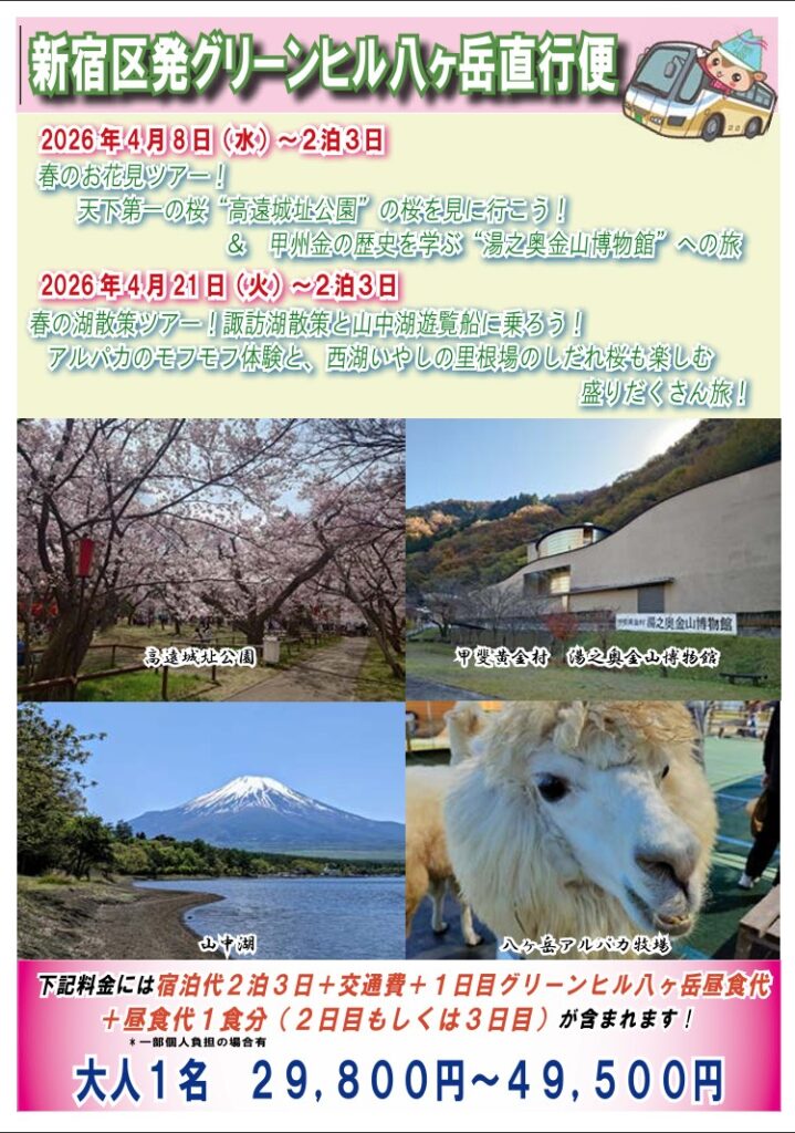 2026年4月 新宿発バスツアーのご案内