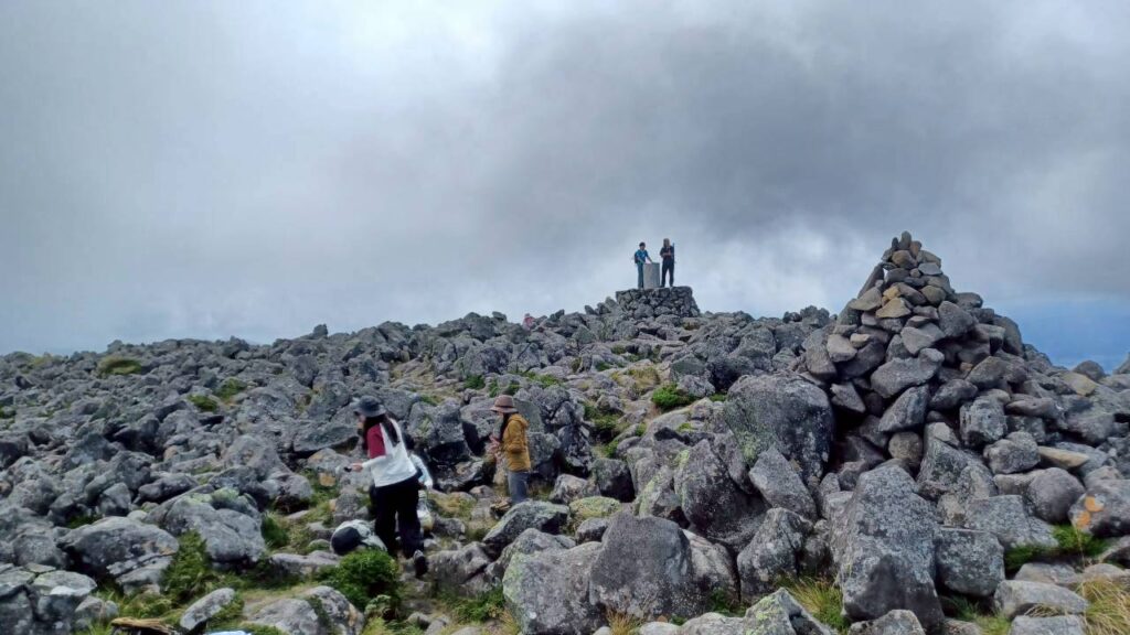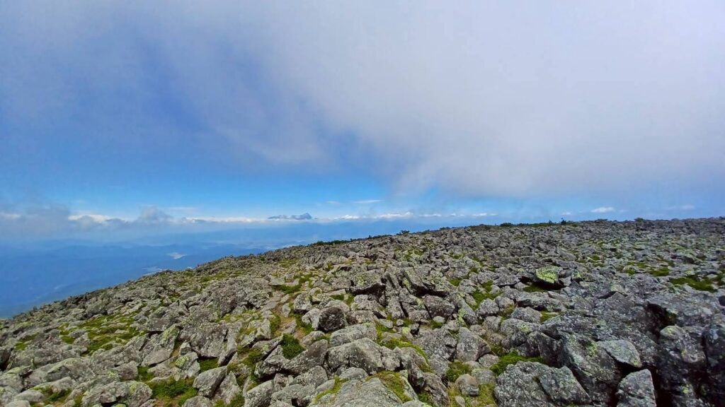 ⑤ 山頂の様子。雲がすごい勢いで流れていて5分おきに天候が変わります。