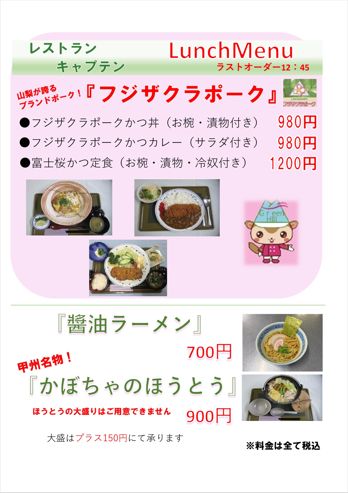 ※4月6日~ラストオーダー12:45まで