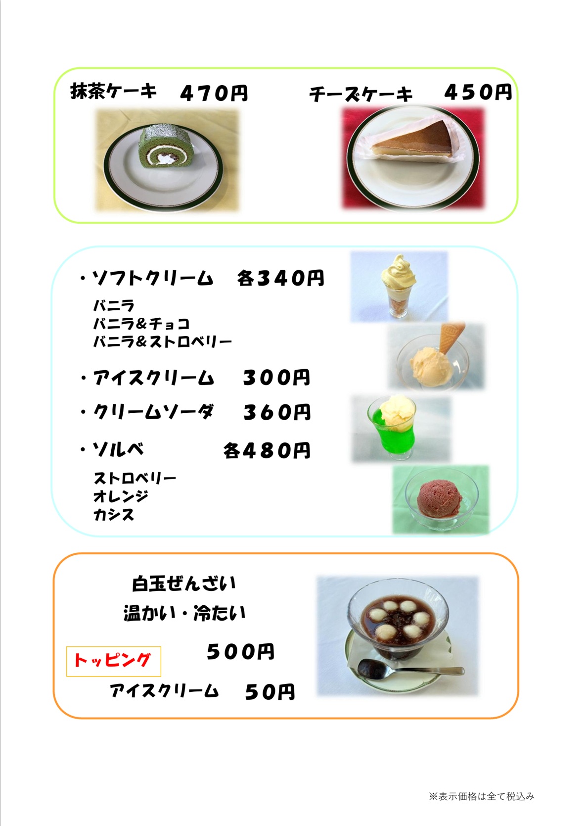 バースデーケーキやその他お祝いのケーキをご要望に応じて御用意いたします。夕食時にサプライズケーキとしてお出しもできますので、予めグリーンヒル八ヶ岳まで御注文下さい(12cm3,450円~)。