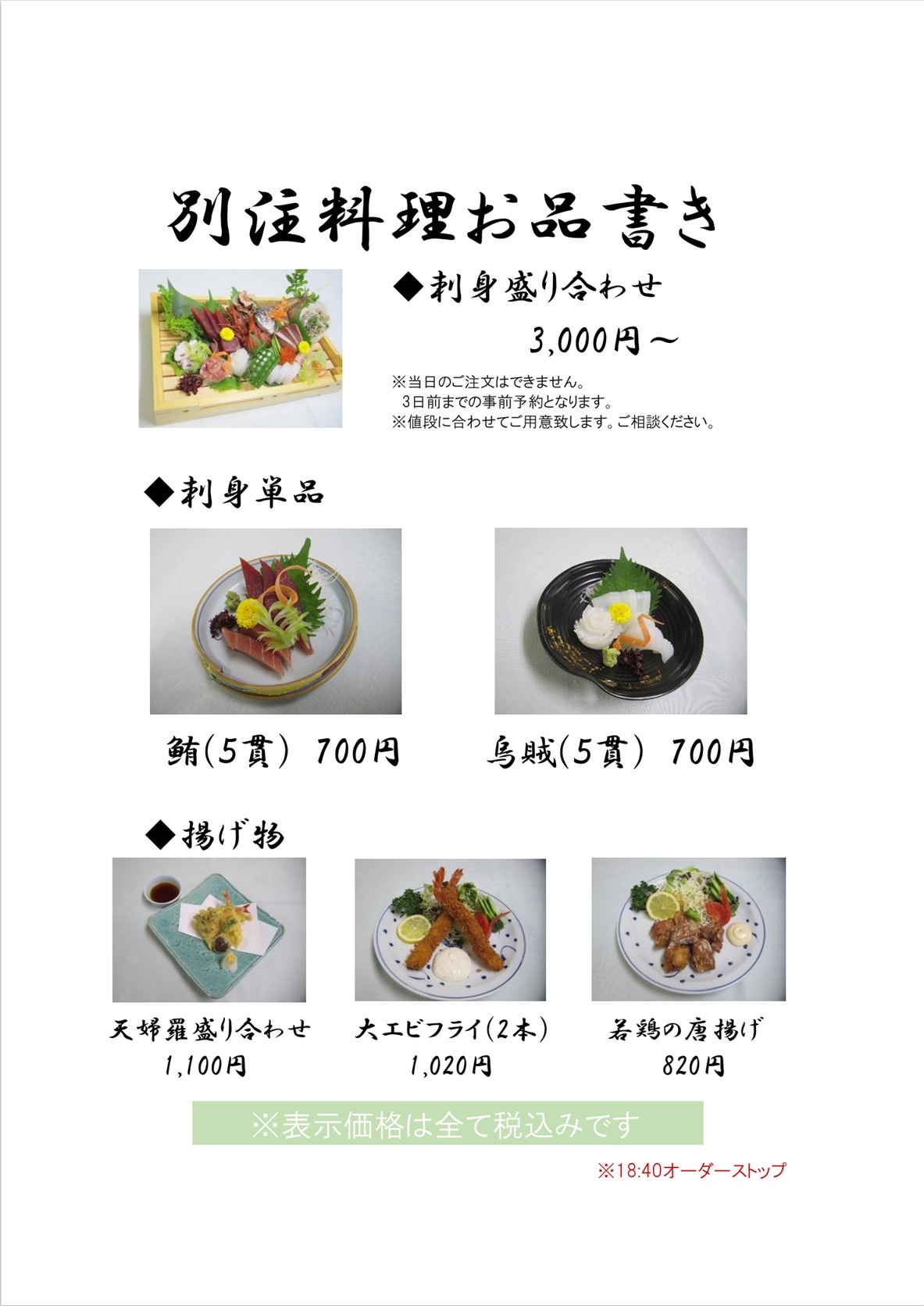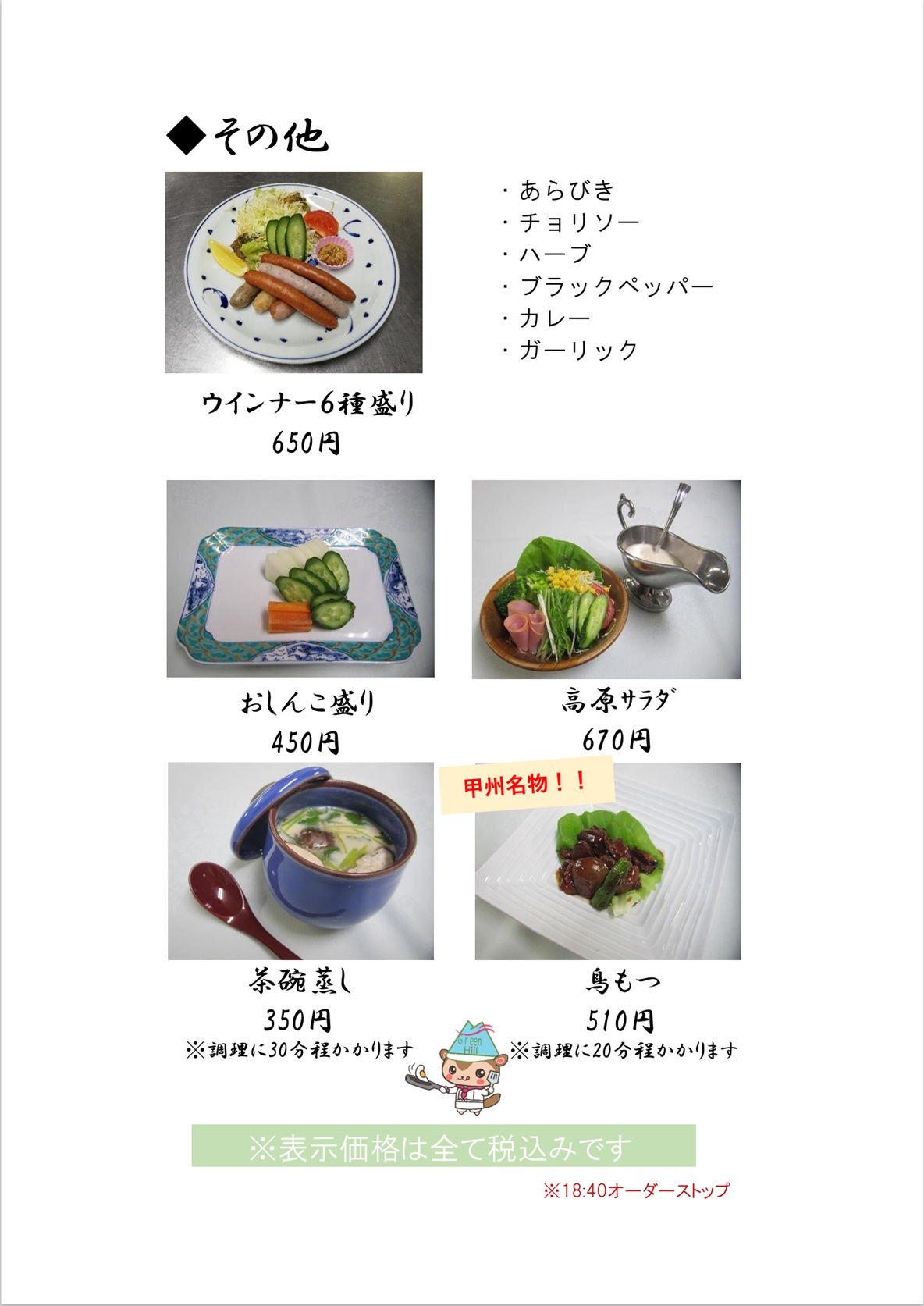 ●夕食追加料理 特別メニュー